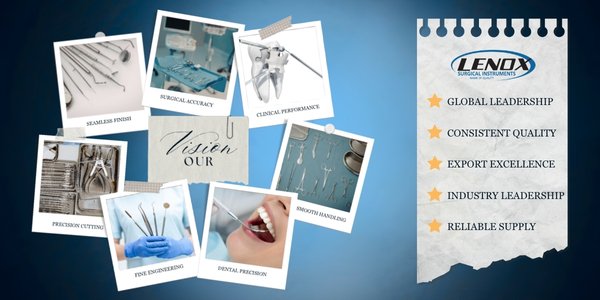 To become a globally recognized manufacturer of surgical instruments, dental instruments, and hospital hollowware, known for precision, consistency, and manufacturing excellence. We aim to lead the industry by delivering high-quality, scalable solutions that support distributors, healthcare providers, and medical brands worldwide, while maintaining strong standards in production, innovation, and global supply reliability.